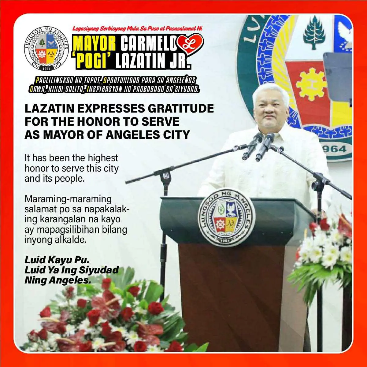 Mayor Lazatin Bids Farewell, Thanks Angeleños for the Honor to Serve